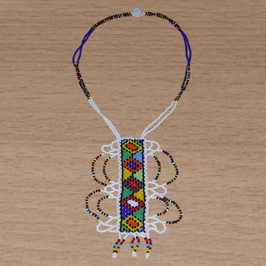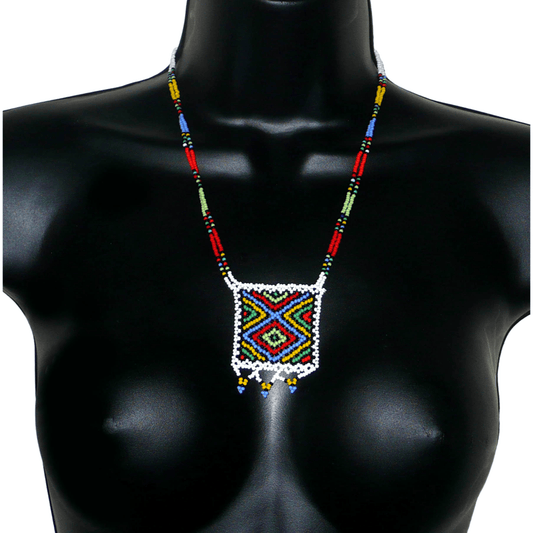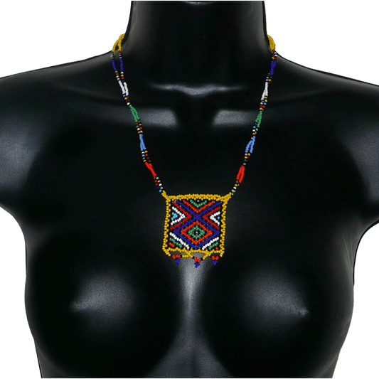 Explorez cette collection de colliers africains zoulous et laissez-vous séduire par la finesse du travail mis en œuvre par des artisans locaux, tenant leur savoir-faire de méthodes ancestrales. Le colliers sud-africains se distinguent notamment par les différentes techniques de tissage de perles utilisées et par leurs motifs colorés, symboles forts de l'identité zouloue.