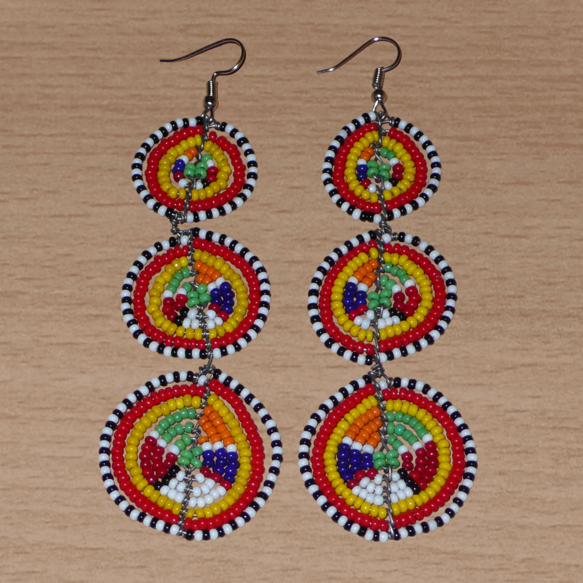 Les boucles d'oreilles mesurent 10.5 cm de long et 3.5 cm de large, elles se portent avec des crochets en acier inoxydable sur des oreilles percées.